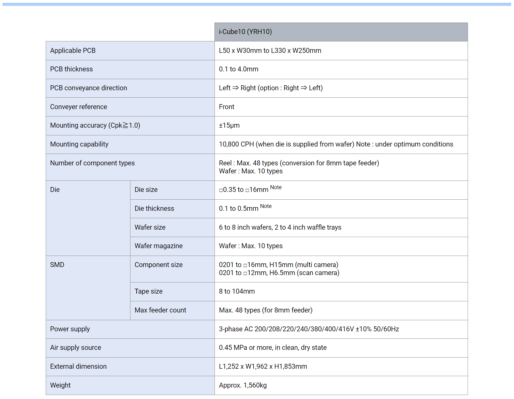 Wafer 6~8inch, 2~4inch waffle trays Die 0.35~16mm SMD 0201~16mm, H15mm